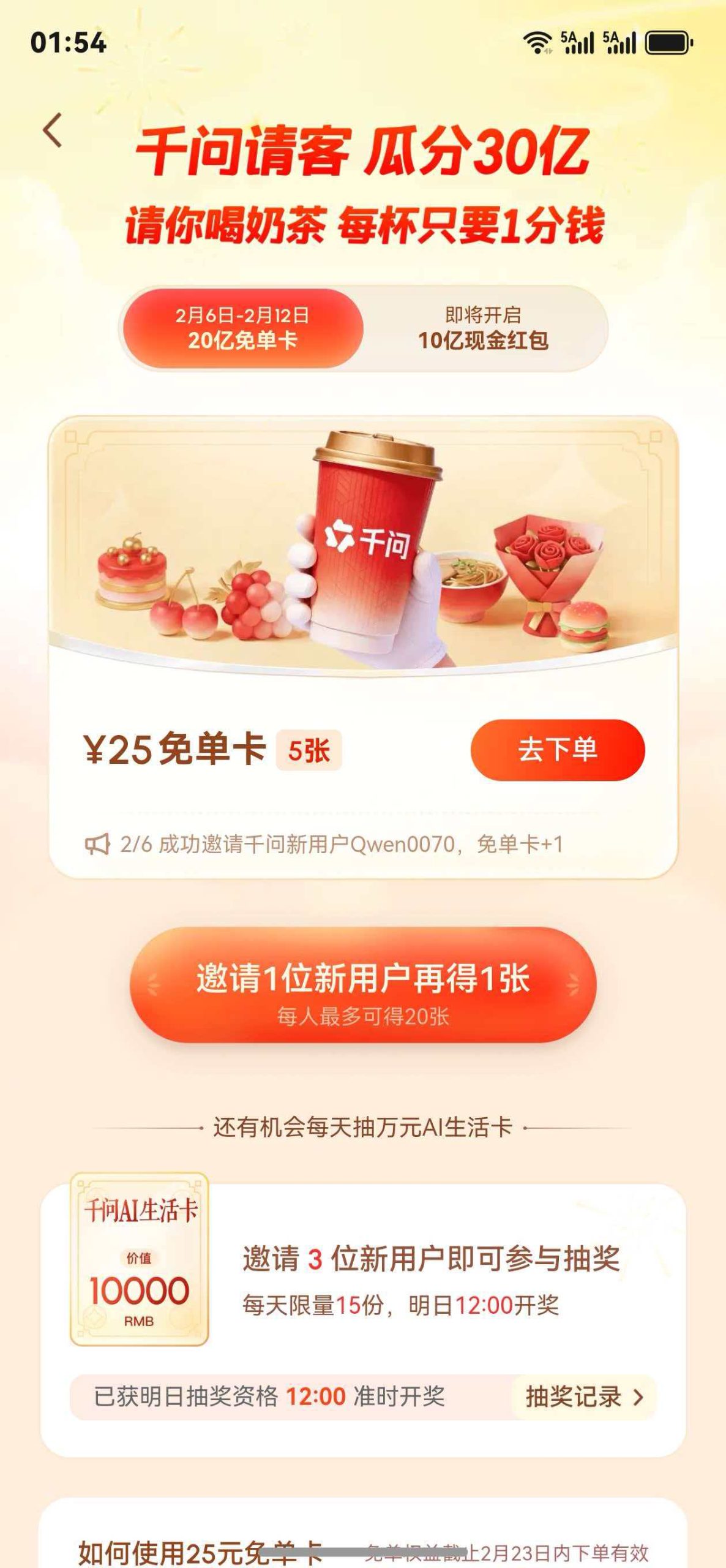 千问狂砸30亿,消费券让全民体验AI点餐新模式!