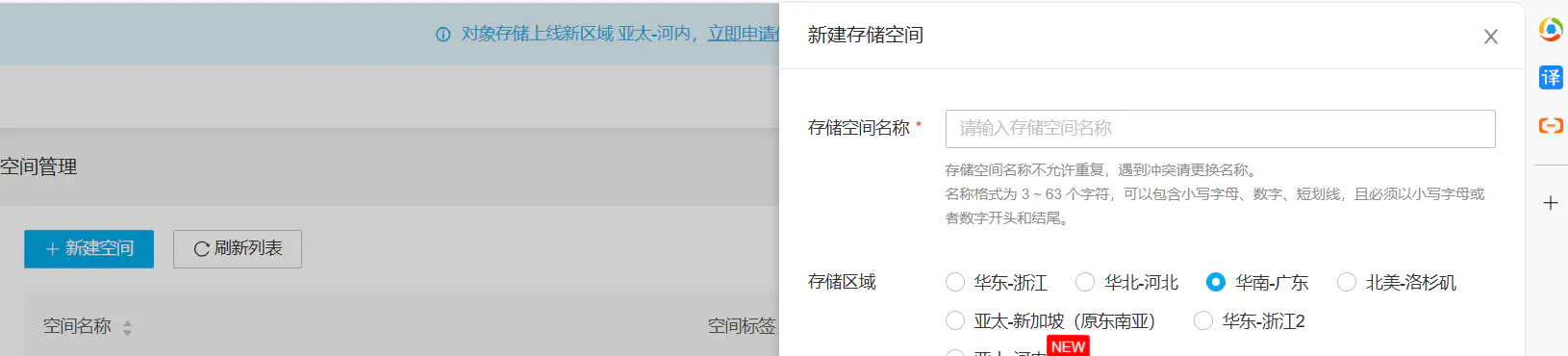 新建存储桶-选择对象存储