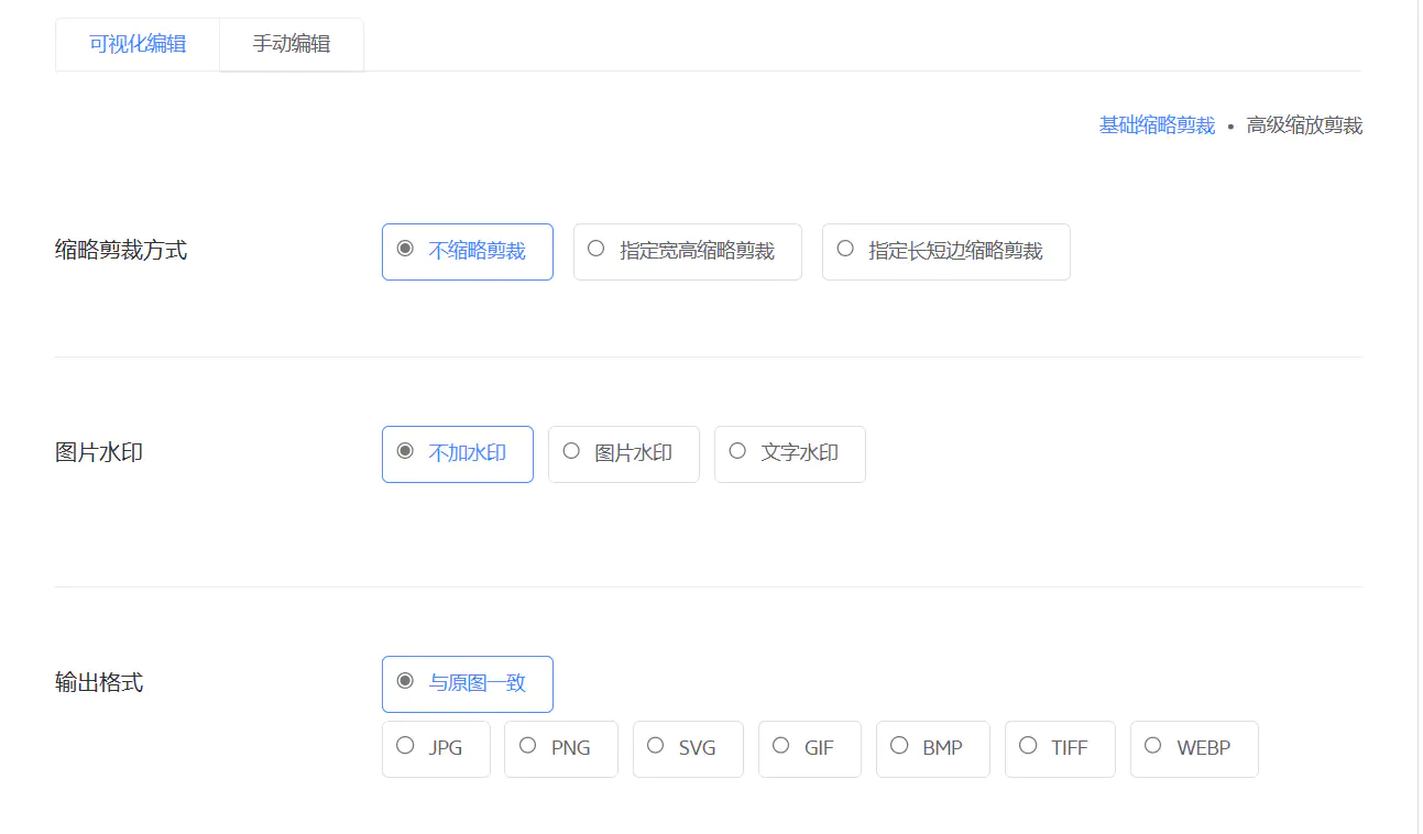 开启图片瘦身,质量70-75%就差不多,看个人,剩下的选项有需求就加。图片处理样式名称,随便设一个就好(展示在图片链接末尾的,别涉及个人隐私就行)。