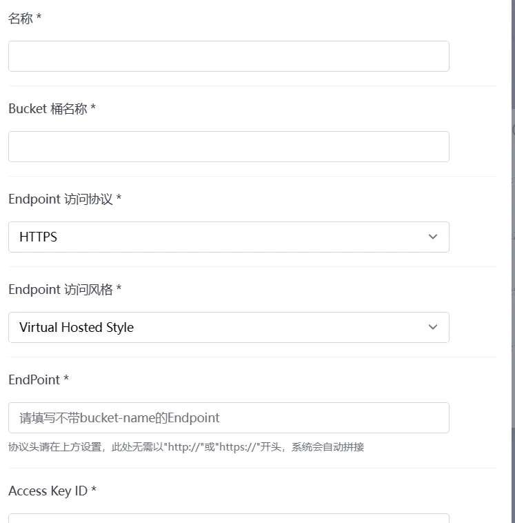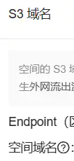 名称自己设置一个,Bucket(存储桶)名称就是最初新建的空间名称,Endpoint在S3域名查看(点进存储空间往下翻就有)