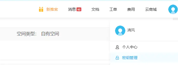 key在右上角头像,密钥管理查看。