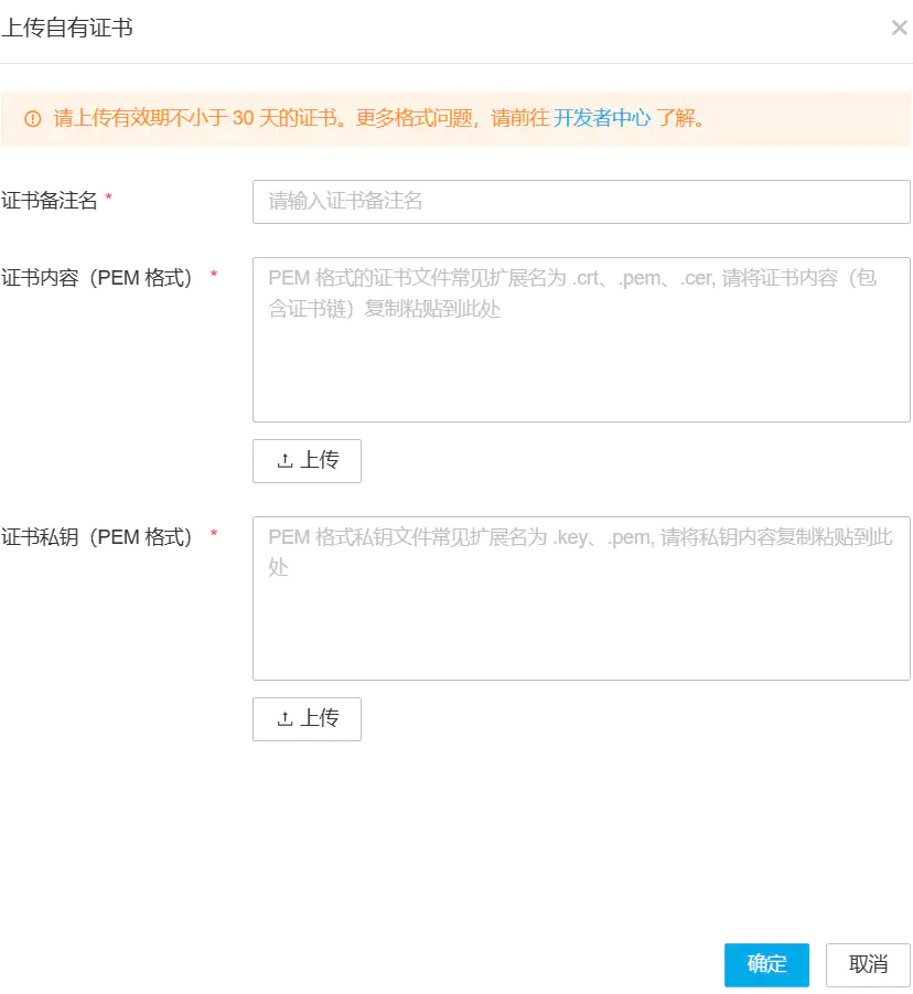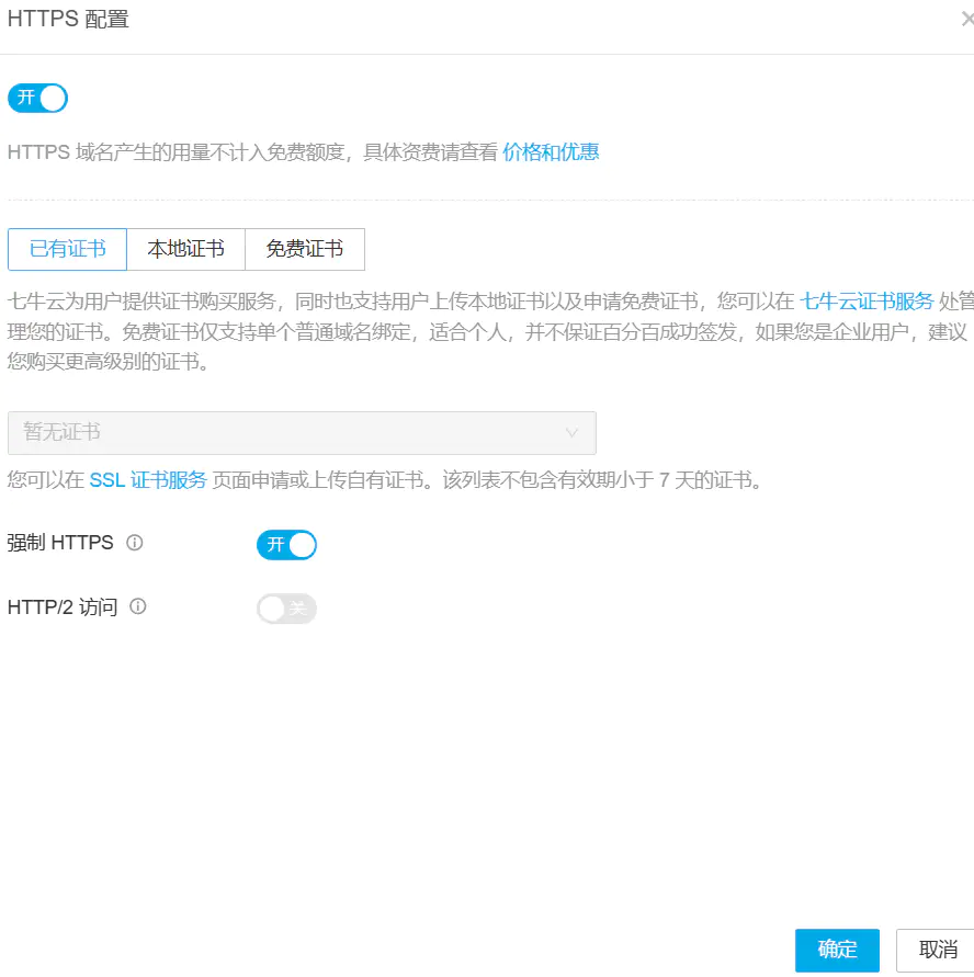 然后在这里打开HTTPS(如果你的网站,刚才填写的链接,采用了SSL证书开启了HTTPS就必须要使用这个,因为HTPPS网站无法引用HTTP链接)。在你申请证书的地方下载好证书的压缩包并解压,里面.pem结尾是公钥,.key结尾是私钥。(现在各大平台免费证书都是90天,又拍云暂时还是一年,不久应该也是90天了。)如果你是阿里云下载的证书,格式选择nginx那个下载,不过多赘述了。